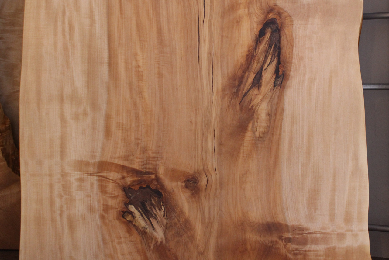 均一な木目だけだと確かにきれいな木の表情ですが、杉などの針葉樹のような、または小径木のような若さを感じてしまい深みがないような気がします。