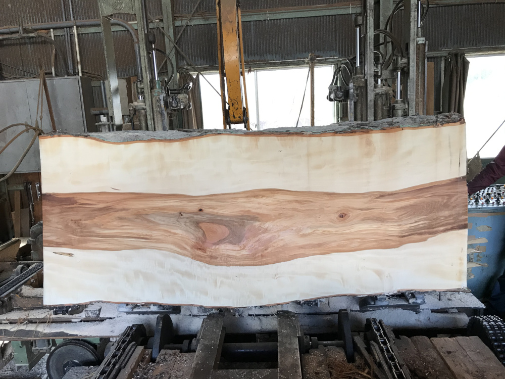 1m以上の大きな丸太を製材して採れた、製材所の社長もビックリするくらいきれいな栃の一枚板。