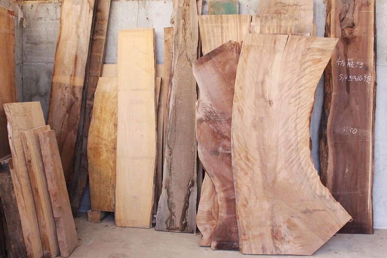 栃・楠・欅などの国産材を中心に、外国材のブラックウォルナット・ブラックチェリーと様々な材種の一枚板を多数取り揃えています。